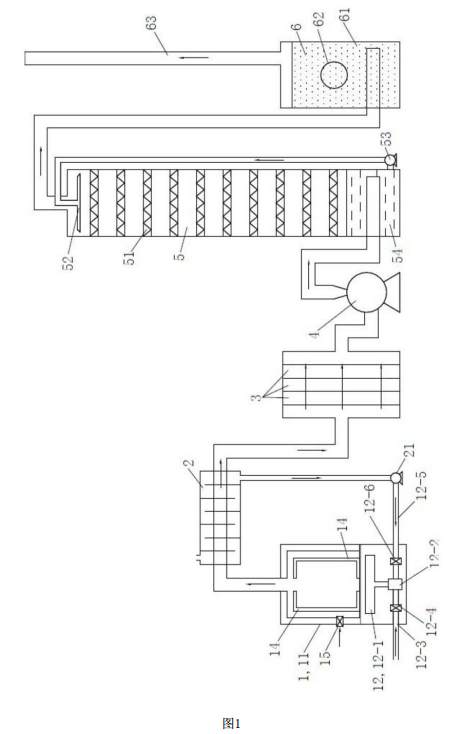 上述热管竖直呈螺旋状设置。 上述填料塔内的填料为多孔不锈钢波纹板,所述滤芯吸附装置内设有多层高分子复合材料制成的滤芯。