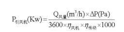 其中,P 引风机为引风机功率,Q 风量为每小时引风机引风量,ΔP 为引风机的全风压,η风机为引风机的内效率,η传动为机械传动效率。